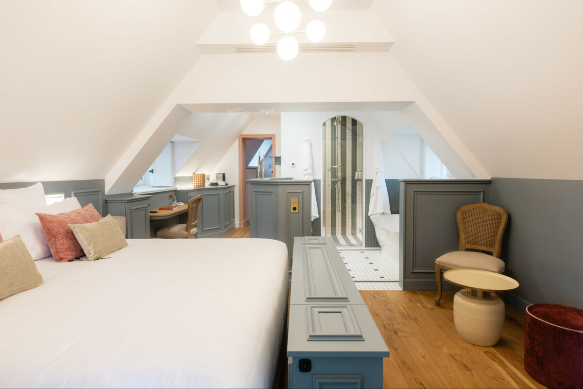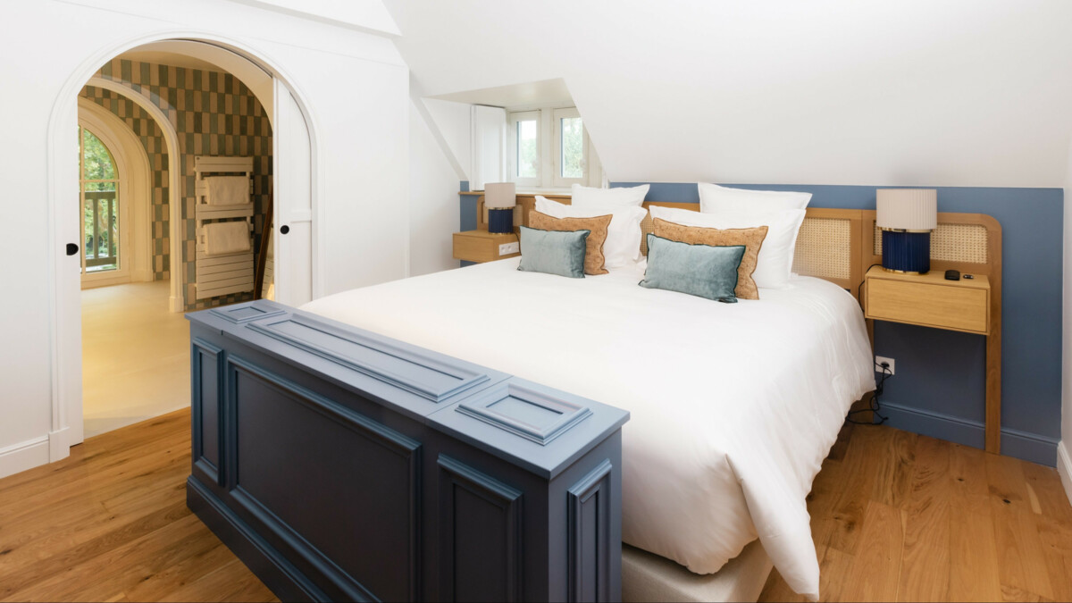 Situada en la primera planta de los antiguos establos, la habitación Deluxe Parc ofrece un ambiente lujoso y refinado, donde el confort se funde armoniosamente con una vista impresionante del parque circundante. Ideal para una escapada romántica o un descanso relajante, esta habitación promete una experiencia inolvidable.